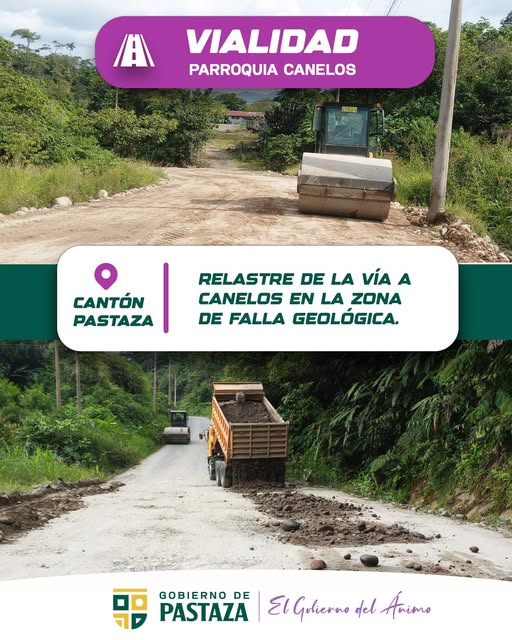 El Gobierno de Pastaza, bajo el liderazgo del prefecto André Granda, culminó con éxito los trabajos de relastre de la vía a la parroquia Canelos, en una zona de falla geológica del cantón y provincia de Pastaza.