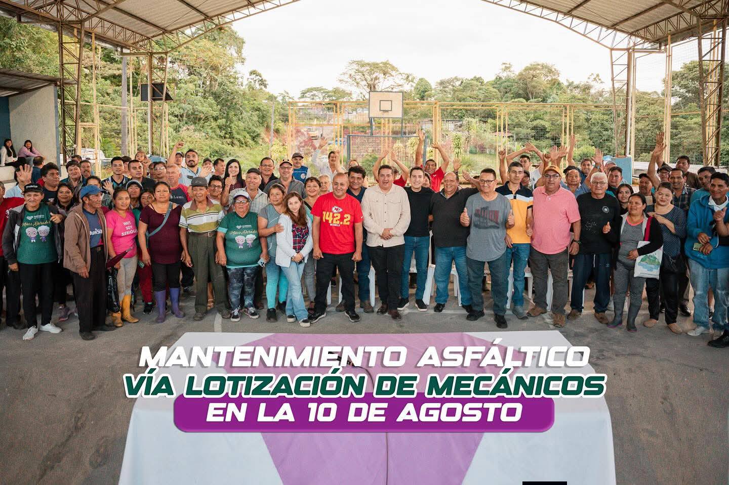 El Prefecto André Granda llegó hasta el sector Lotización de Mecánicos, en la parroquia 10 de Agosto, para socializar el mantenimiento asfáltico de 1.000 metros que beneficiará a familias y vecinos del gremio.