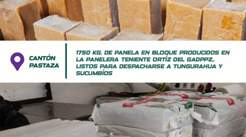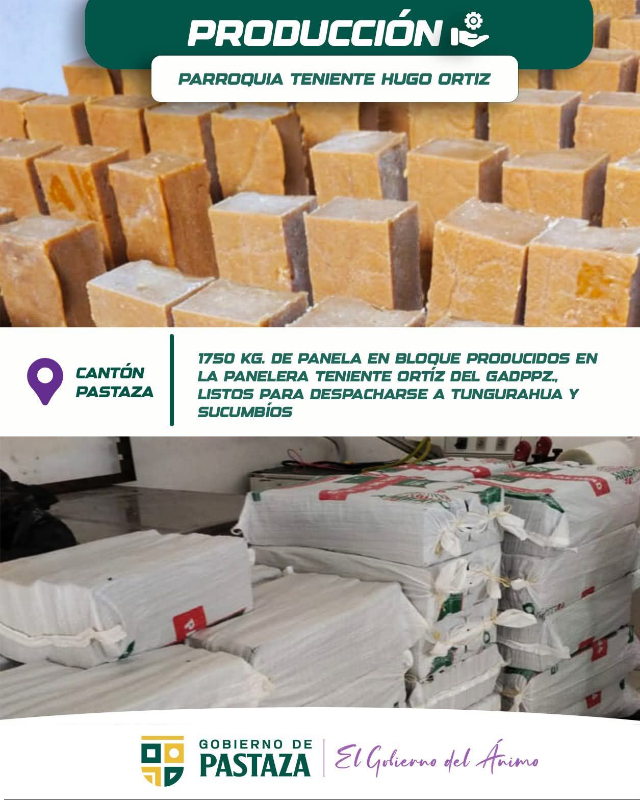 Nuestra caña, nuestro orgullo! Se comercializa a nivel nacional. Producción que fortalece a Pastaza. Con orgullo anunciamos que desde la panelera Teniente Ortíz, del Gobierno Provincial de Pastaza, se han producido 1.750 kg de panela en bloque, listos para ser despachados a Tungurahua y Sucumbíos.