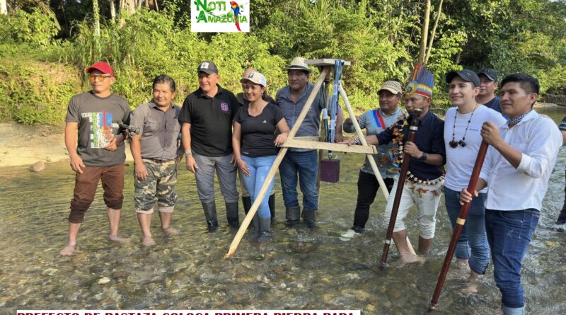 PREFECTO DE PASTAZA COLOCO LA PRIMERA PIEDRA SOBRE RIO SARAYAQUILLO, EN PARROQUIA SARAYAKU