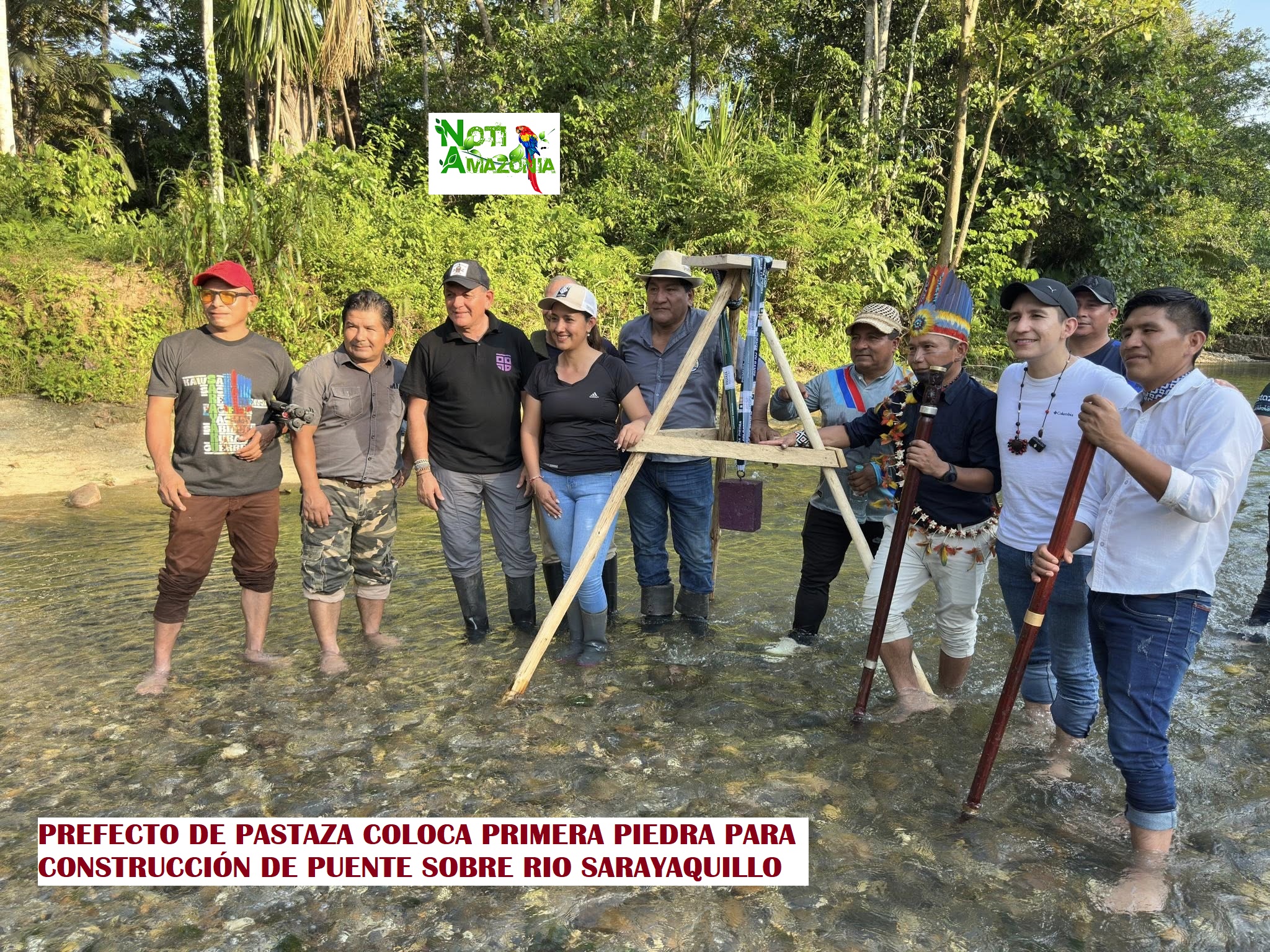 PREFECTO DE PASTAZA COLOCO LA PRIMERA PIEDRA SOBRE RIO SARAYAQUILLO, EN PARROQUIA SARAYAKU