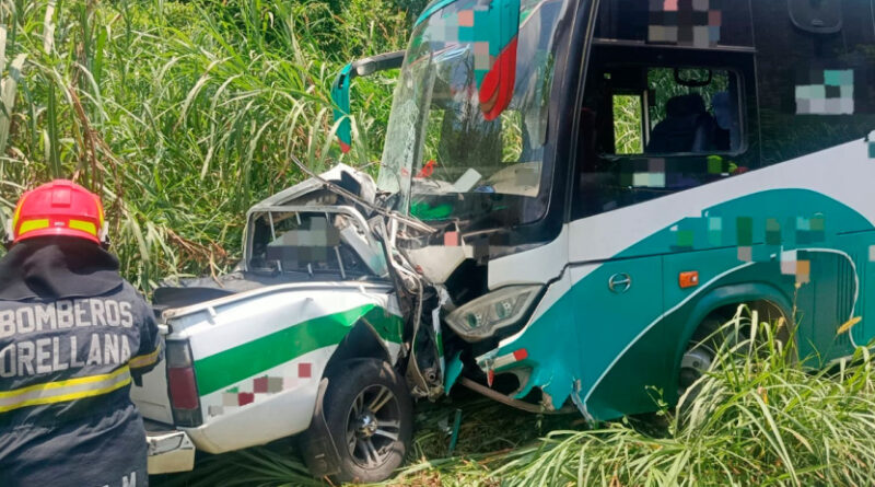 El siniestro ocurrió entre un bus interprovincial y una camioneta en la vía Loreto–Coca, en Orellana. Todas las víctimas se movilizaban en el vehículo liviano, cuya cabina quedó completamente destruida.