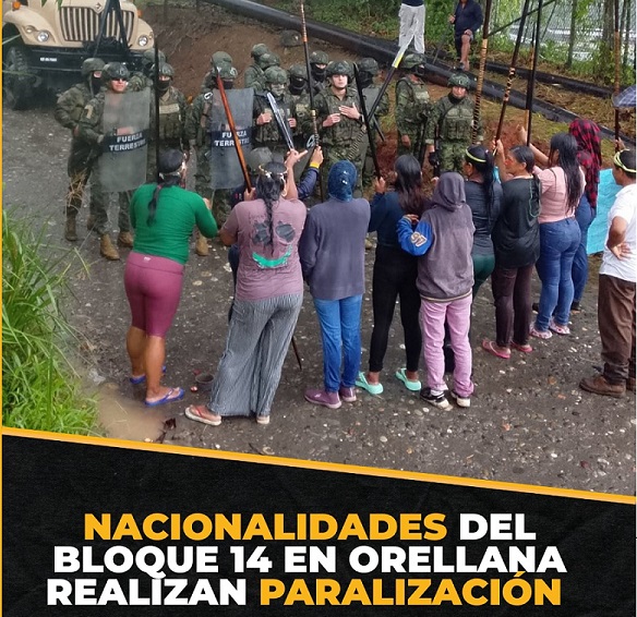 Las nacionalidades y comunidades del Bloque 14 iniciaron una paralización como medida de protesta frente al anuncio del cambio de operador petrolero, que pasaría de Petrochina a Petroecuador. Desde primeras horas del día, los habitantes de las zonas cercanas cerraron vías de acceso y suspendieron actividades, señalando que no fueron consultados sobre esta decisión, pese al impacto directo de la actividad petrolera en su territorio.