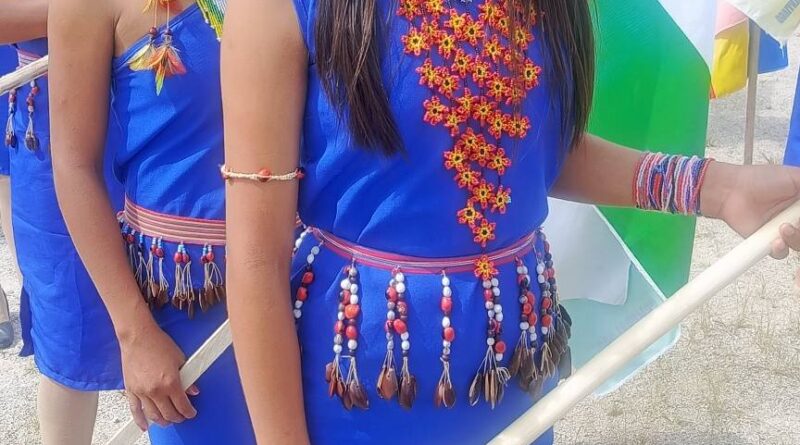 Pastaza: estudiantes shuar con sus atuendo típico de parada desfilaron en aniversario de Chuwitayu