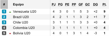 Así está la tabla del grupo A. Venezuela, Brasil y colombia ya tienen el cupo, Chile y Bolivia, eliminados