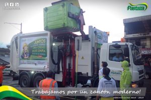 La tarde de este lunes 23 julio 2018 en la plaza México de Puyo fueron presentados por parte del alcalde de Pastaza Roberto De la Torre el nuevo recolector lateral y 3 de los 100 contenedores que serán ubicados en puntos estratégicos de Puyo, dentro de la primera etapa de modernización del sistema de recolección de basura en la ciudad. Los aparatos recibieron la bendición y se pasira para el próximo una adquisición de otros 100 contenedores más.